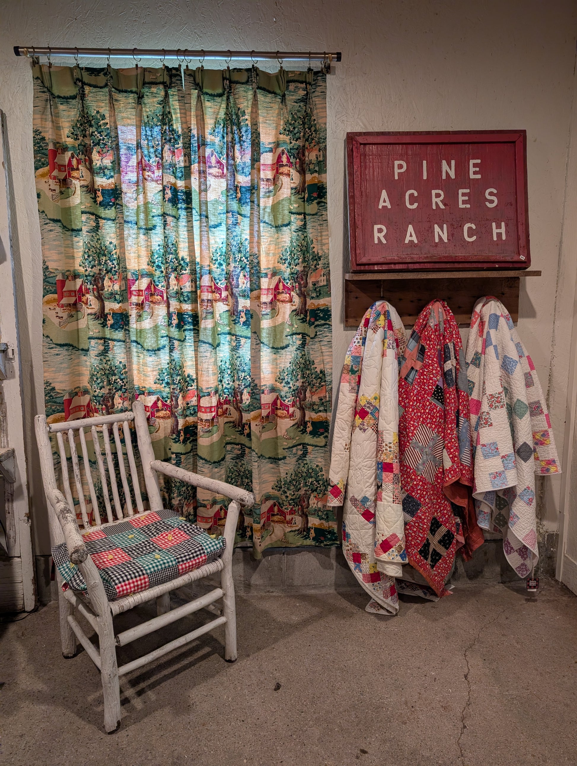Bark Cloth Vintage Farm Pattern Drapery