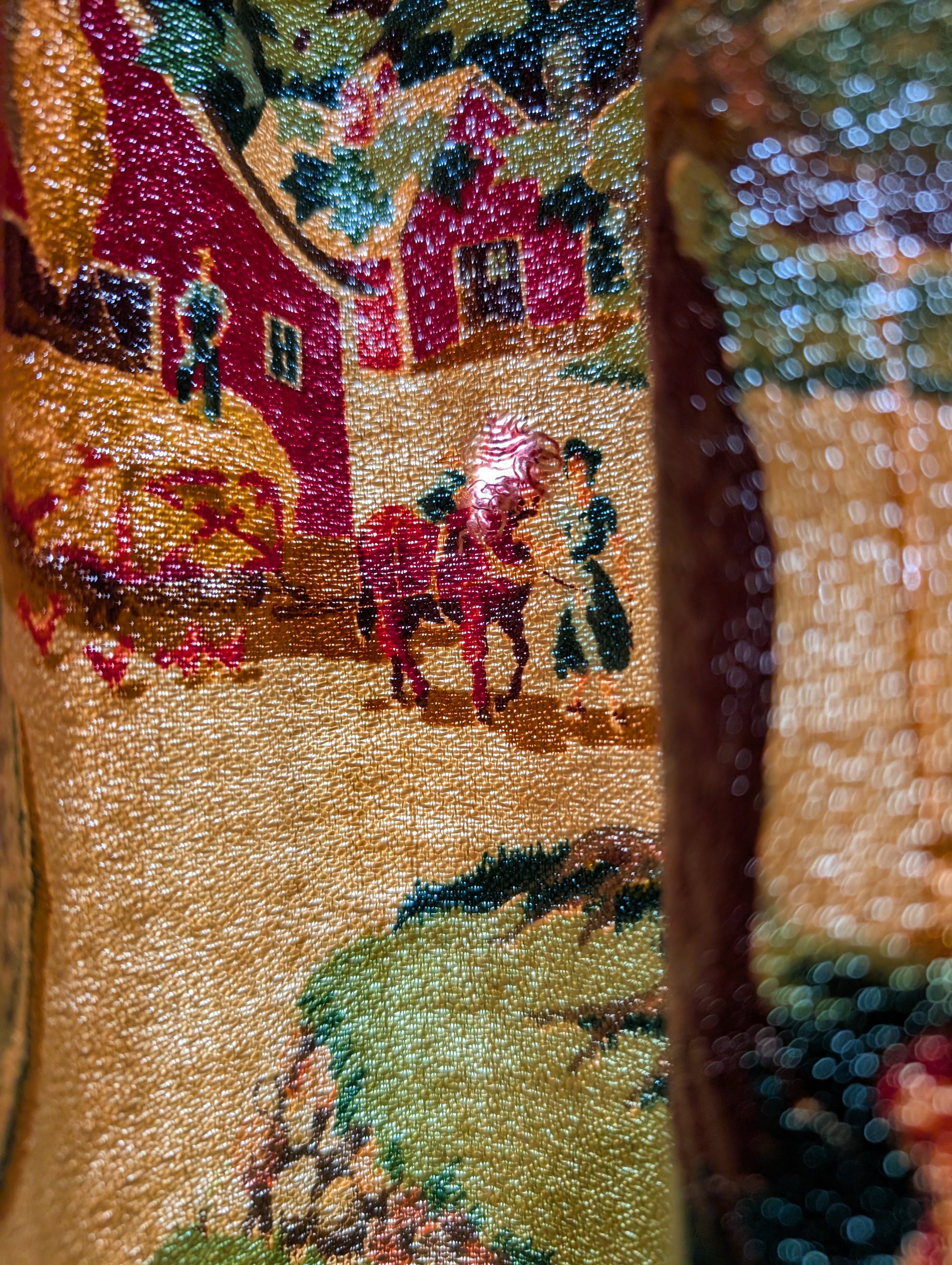 - Beautiful Farm Life design on this bark cloth vintage fabric